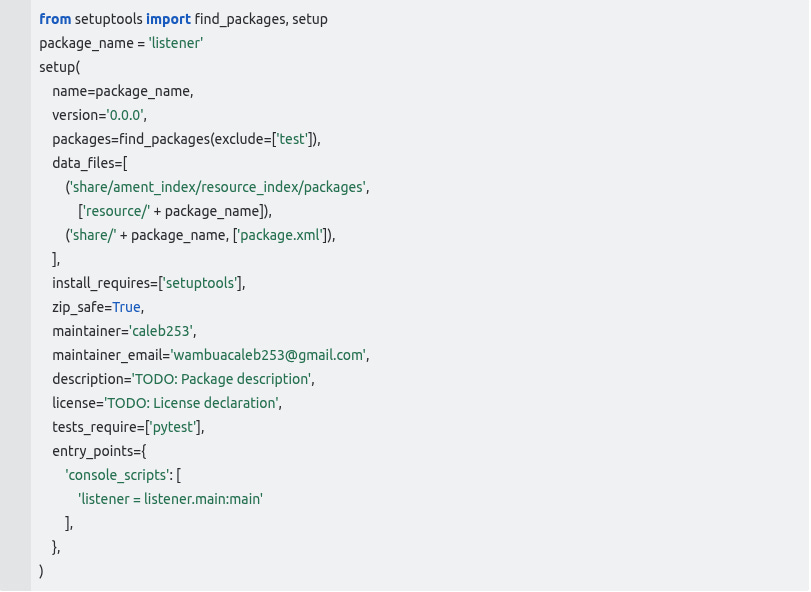 To access the listener node create a file under ros2_ws/src/listener inside the listener package just created above and name it accordingly, e.g, main.py, listener_node.py. Then input the code as follows: