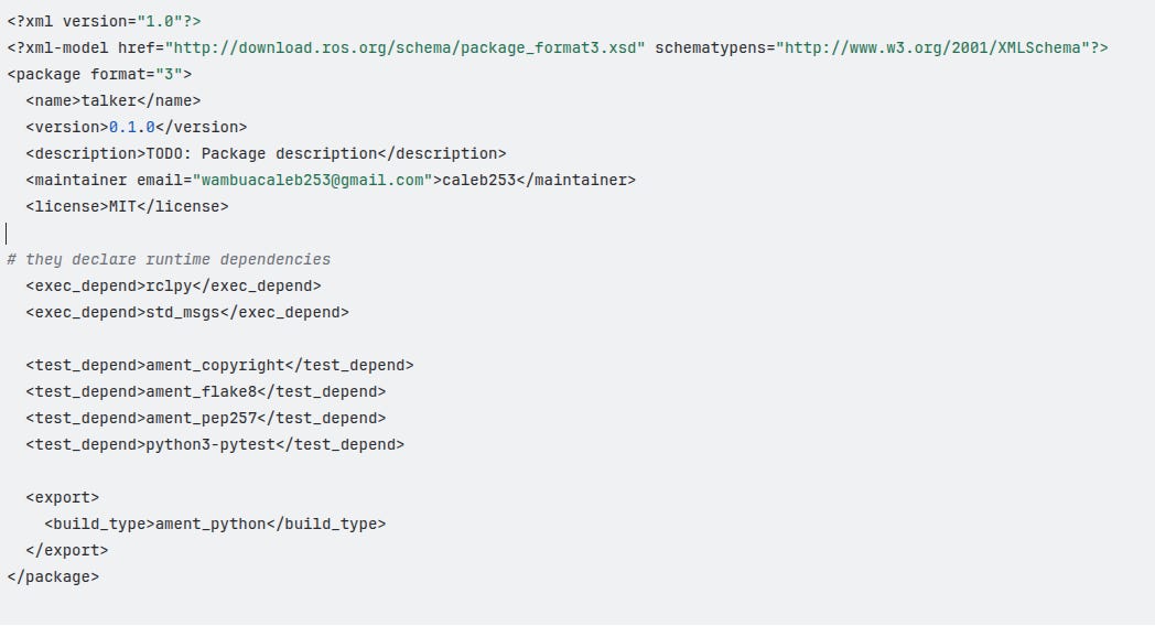 In both talker/package.xml and listener/package.xml, make sure the dependencies are present to make the code as follows: